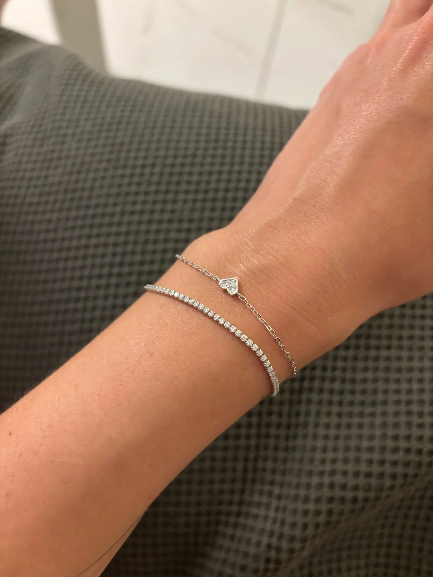 A pavé heart charm set with clear zirconia on a fine 925 sterling silver chain. Available in silver and gold. Sweet without being sentimental - an everyday reminder of what matters.