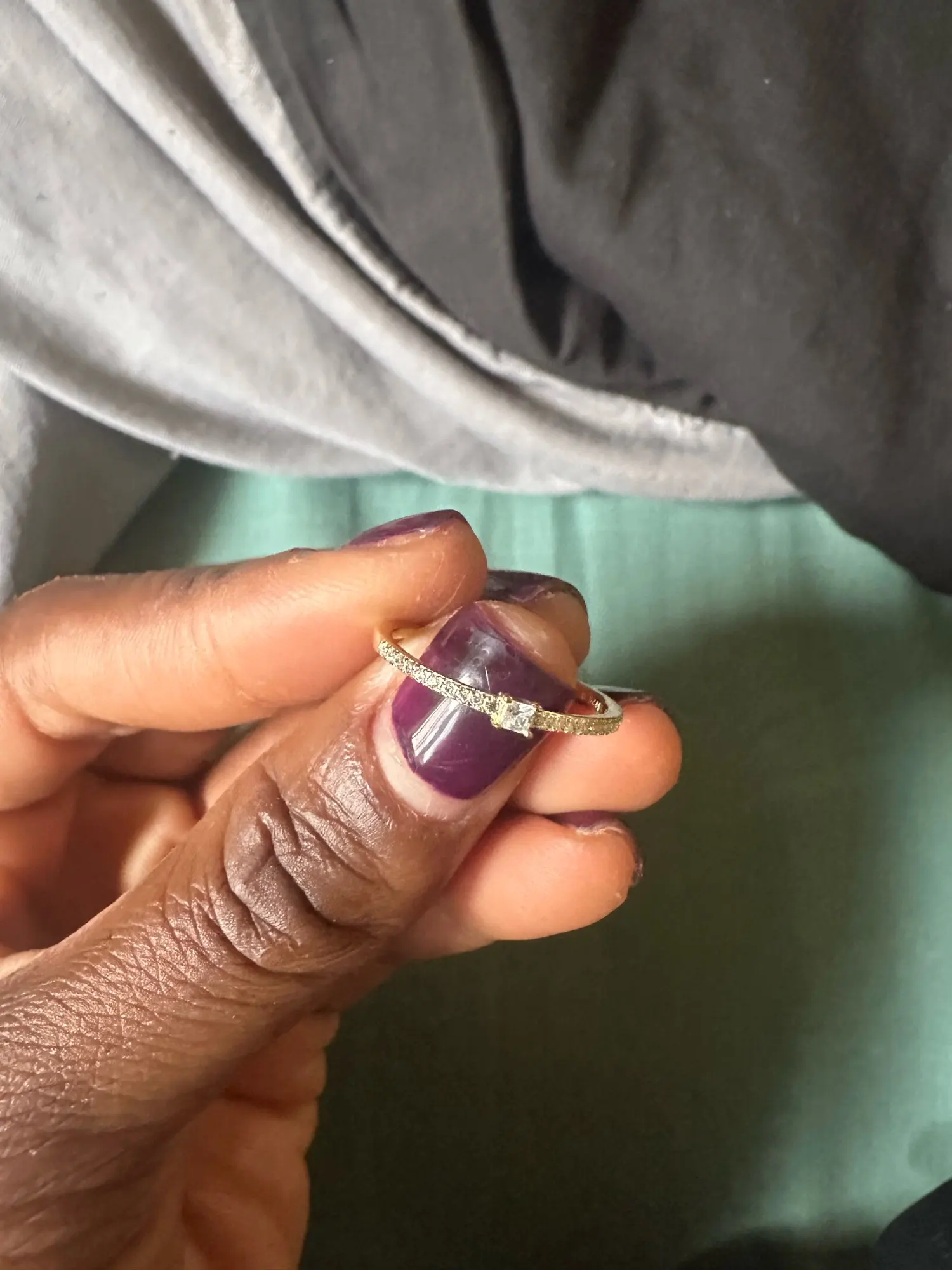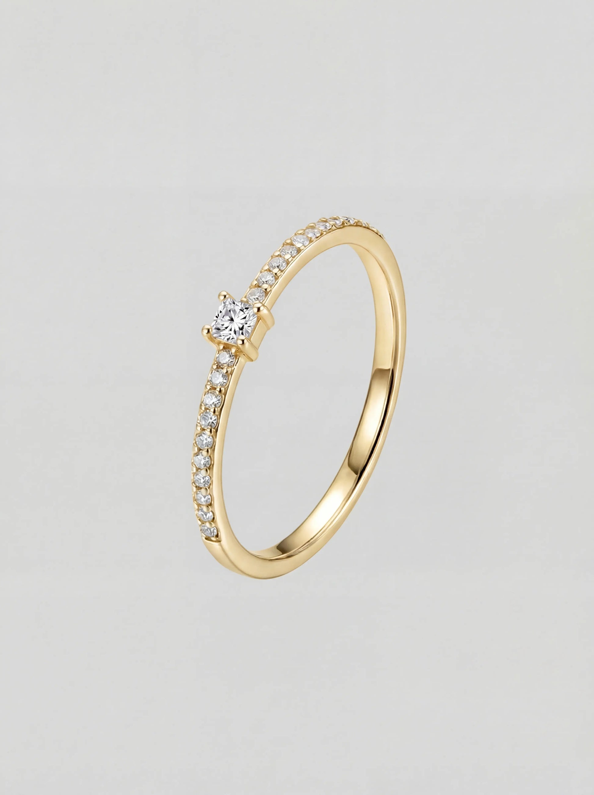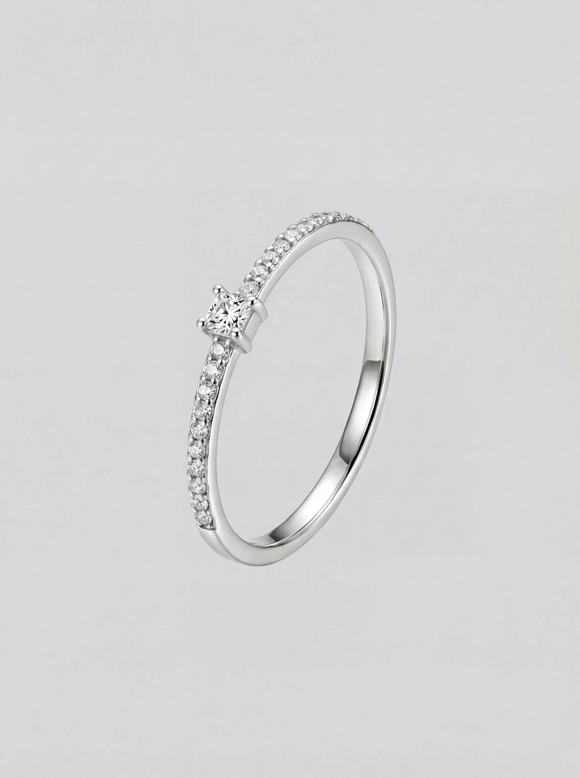 A single prong-set zirconia centrepiece on a delicate pavé band, crafted in 925 sterling silver. Available in silver and gold. Quiet sparkle with a classic silhouette.
