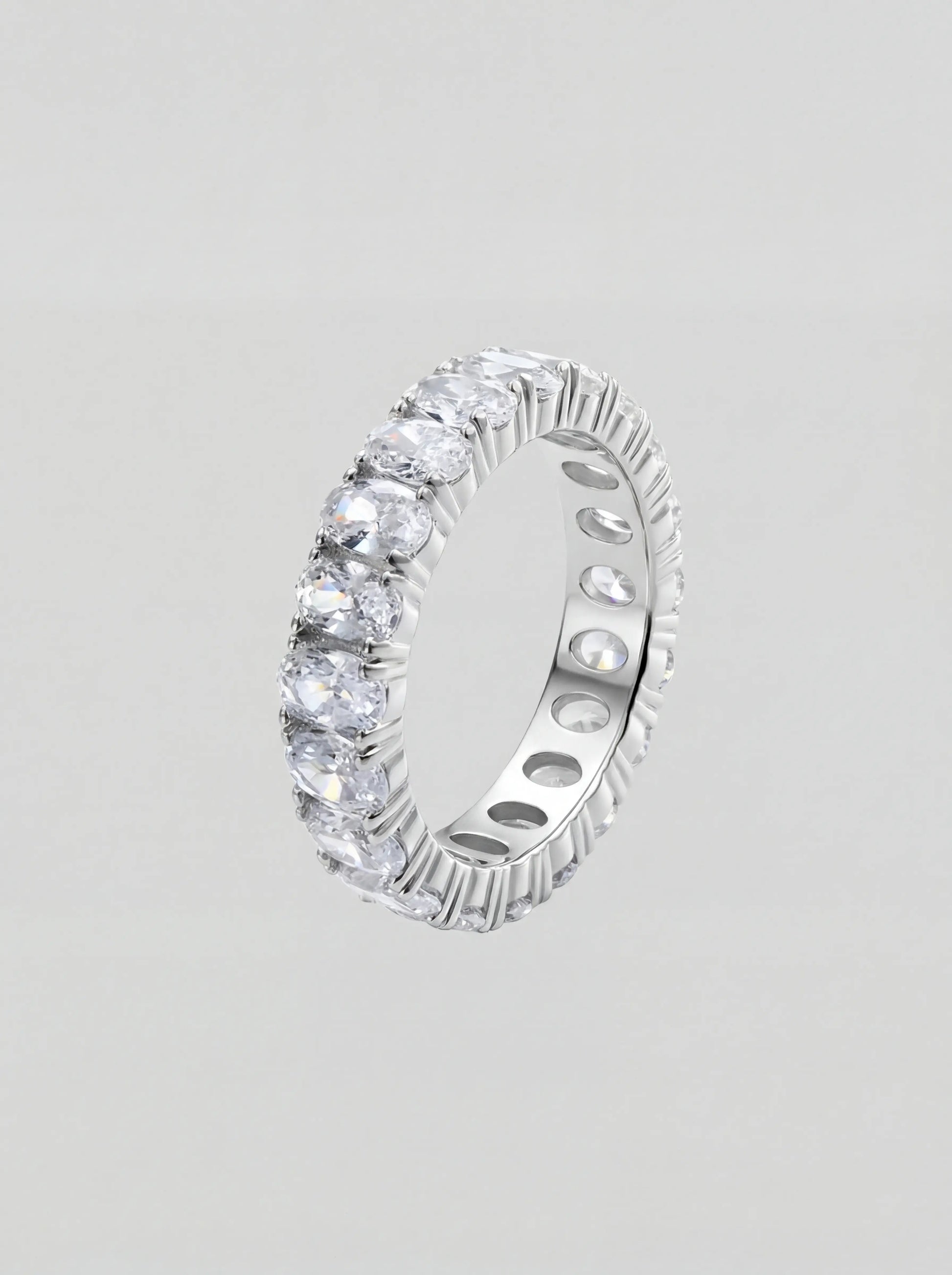A full eternity band with oval-cut zirconia set all the way around, crafted in 925 sterling silver. Bold, brilliant, and made to turn heads.